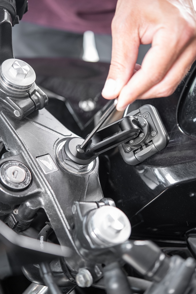 Nejčastěji ho používají jezdci na enduro, adventure a naked bike, kde jsou řídítka po celé šířce přístupná a je více možností, kam dle potřeby a preference držák umístit. Systém držáku lze bezpečně připevnit na širokou škálu řídítek (od průměru 7/8″ do 1,25″) s ultimativním magneticko-mechanický zámkem (SlimLink™), který telefon uchopí a uzamkne tak snadno, že tě to naprosto okouzlí. Ovládání celého systému je opět jednoduché a intuitivní, že Ti na něj bude stačit ve většině případů opět jen jedna ruka.