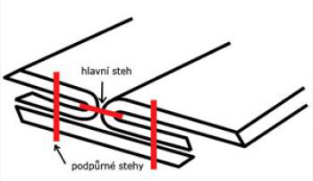 Z názvu plyne, že to bude něco lepšího a opravdu je. Ze schématu je jasné, že když se probrousí zvenčí viditelná podpůrná nit, systém drží pohromadě díky hlavní niti, která je chráněna přehnutou kůží. Používá se tam, kde je kontakt s vozovkou při pádu úplně běžný. A tím myslím úplně všechna místa :o)) Dvojitý šev by měl být na kombinézách i kožených bundách samozřejmostí.