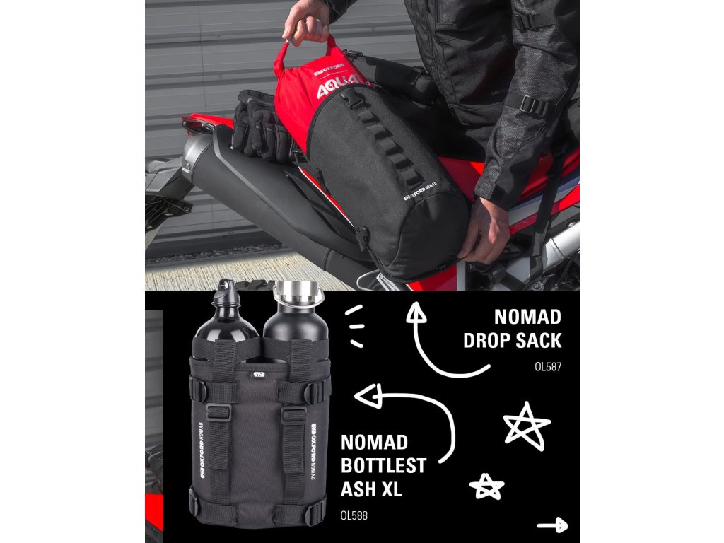 - Jak to funguje? Velmi jednoduše! Na motocykl zvolíte nosné popruhy, které mají mnoho oček. Pak vyberete z velkého množství batohů a brašen. Tyto brašny lze snadno přichytit na Vámi zvolené popruhy a to do míst ve kterých je potřebujete. Brašny lze kombinovat jakkoliv mezi sebou a lze je vrstvit jednu na druhou dle Vašich potřeb
