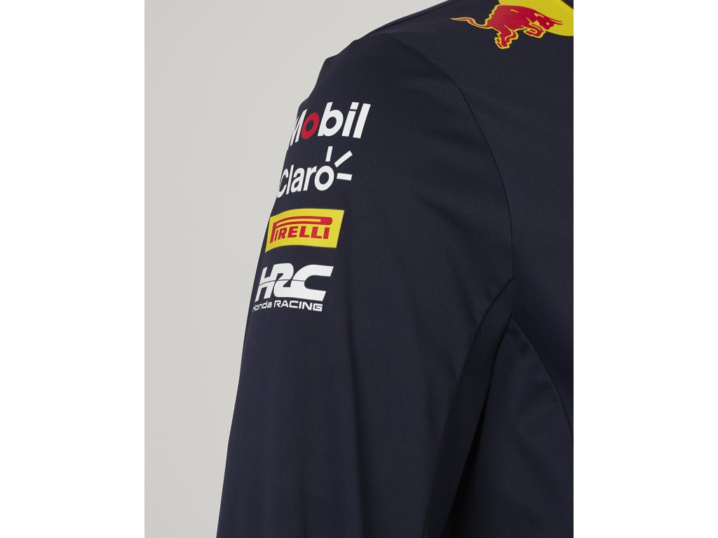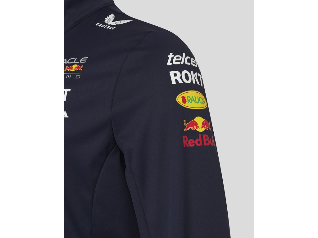 Nová týmová softshell bunda Red Bull Racing F1 nošená jezdci a členy týmu v sezóně Formule 1. Tmavě modrá softshell bunda Red Bull Racing F1 doplněná logy sponzorů od výrobce Castore. Pohodlná na nošení, krásné barvy.