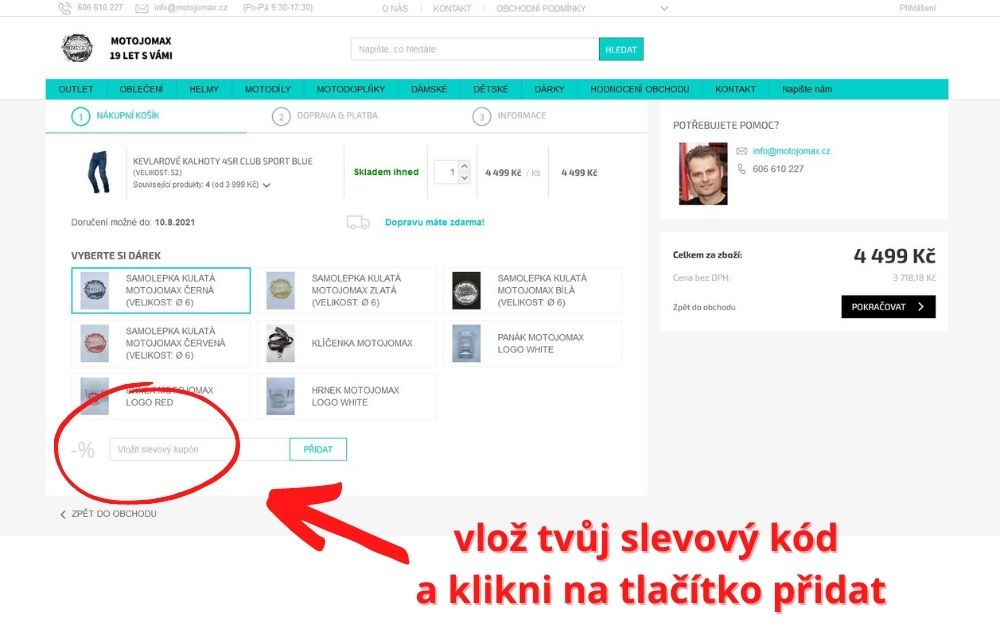 a) Při nákupu v kamenné prodejně MOTOJOMAX,s.r.o. na adrese Benešova 100/3 Kutná Hora 284 01 předložením kuponu