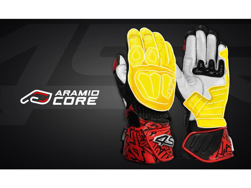 Sportovní rukavice na motorku vyvinuté pro závodní použití s důrazem na absolutní jistotu úchopu, cit v ovládání motocyklu a nejvyšší ochranu v každé situaci. Maximální bezpečí je zajištěno použitím vložky z aramidového vlákna „Aramid Core“. Na vývoji těchto moto rukavic se podíleli profesionální závodníci 4SR, kteří kladli důraz na kombinaci citu, komfortu a nejvyšší úrovně bezpečnosti. Základem konstrukce je aramidová výztuha Aramid Core, která díky své vysoké tepelné odolnosti brání prodření při kontaktu s asfaltem.