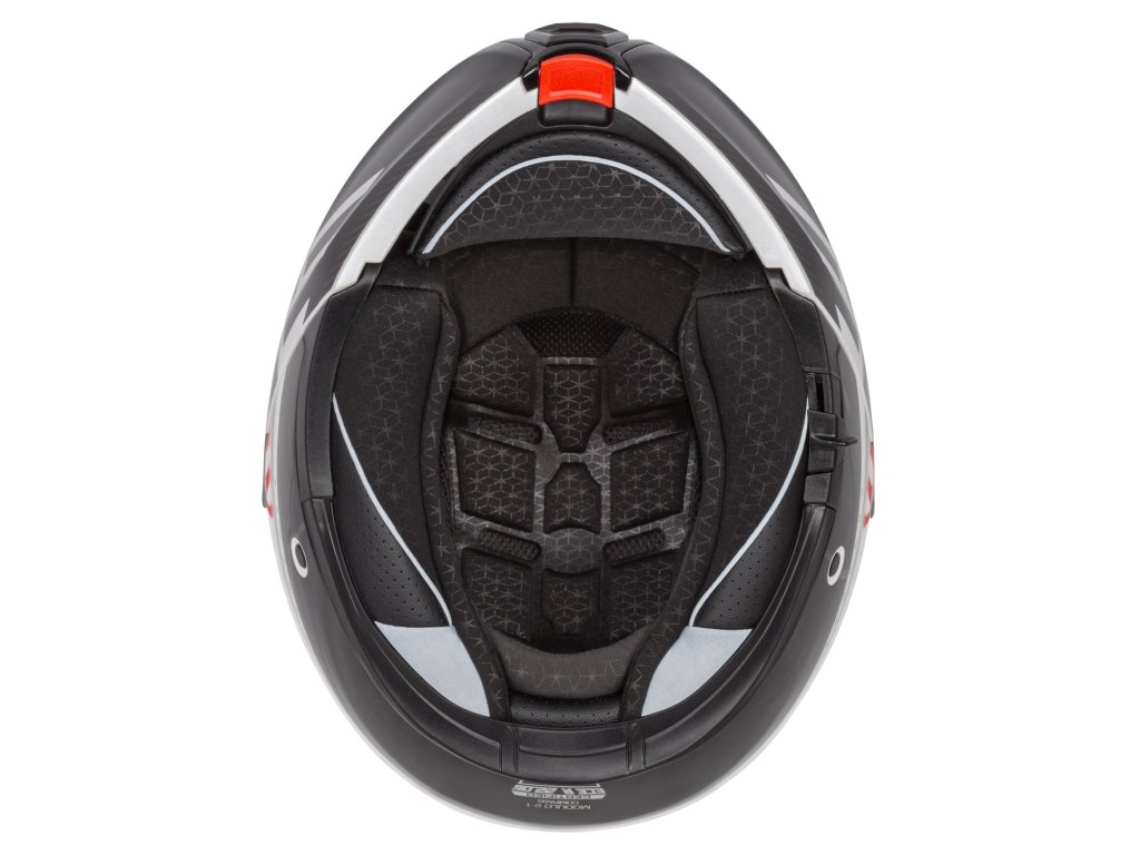 | Výbava helmy: | Antibakteriální interiér, Bradový deflektor, Nosní deflektor, Odnímatelný interiér, Pratelný interiér, Příprava pro interkom, Příprava pro pinlock, Reflexní odrazka, Sluneční clona, Textilní vak na helmu, Ventilace |