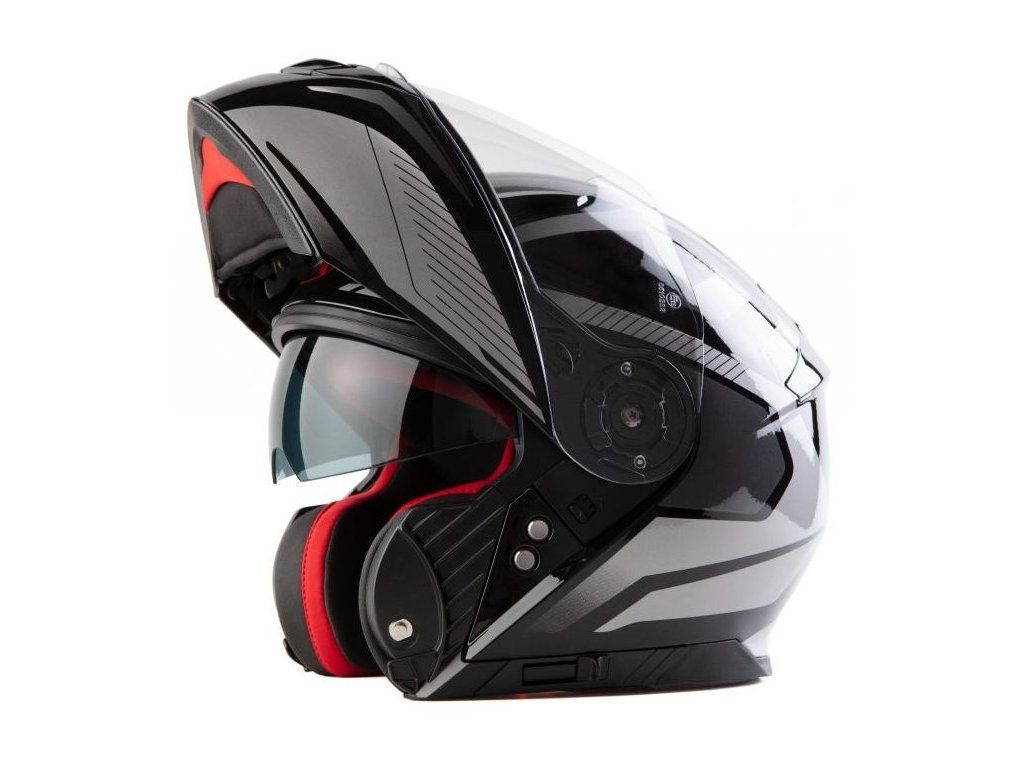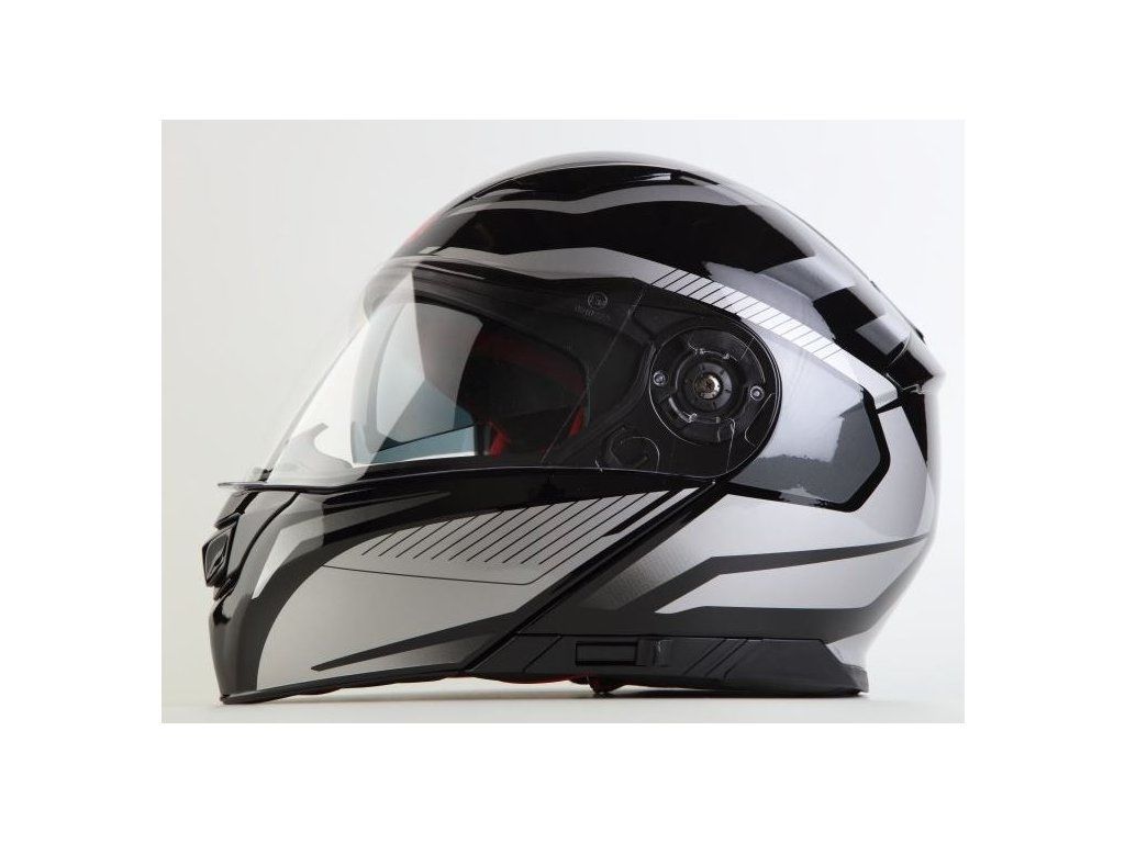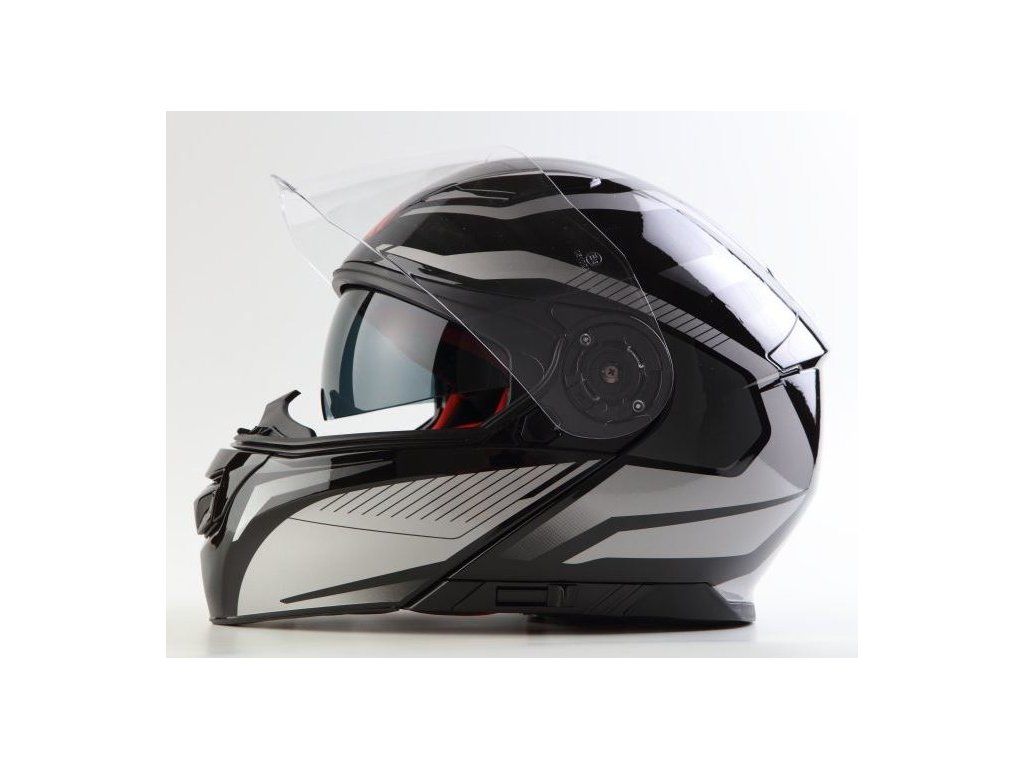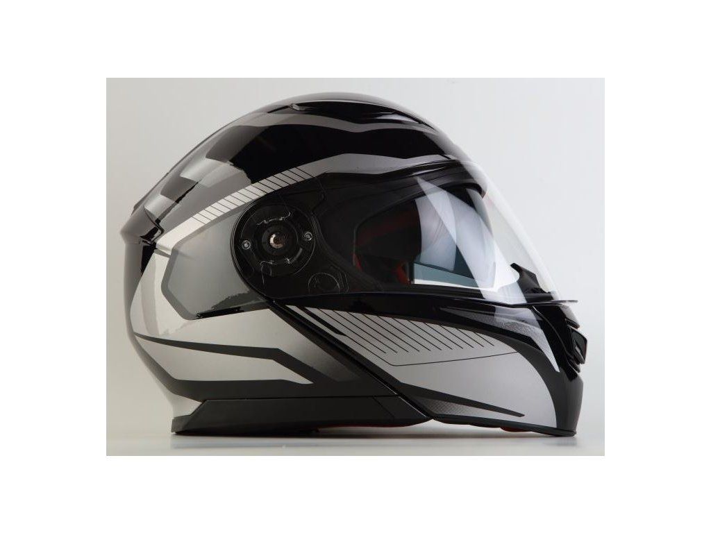 Vyklápěcí helma v černošedostříbrné lesklé barvě.